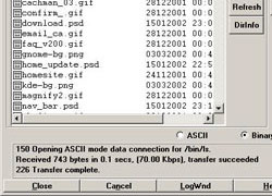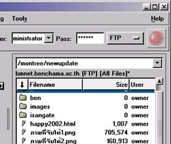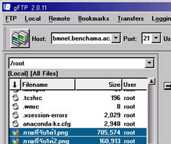 พอจับภาพมาได้แล้วผมจะเอาภาพออกมาได้ยังไงหนอ น่าจะมีโปรแกรมพวก FTP อยู่นะ ก็ลองหาดูปรากฏว่ามีครับชื่อว่า gFTP 2.0.11 หน้าตาคล้ายๆ กับเจ้า CuteFTP ครับได้ทดลองใช้ดูได้ผลดีแถมมองไฟล์ที่เป็นชื่อภาษาไทยออกซะด้วยนะครับดังภาพข้างล่าง อะไรจะดีสมบูรณ์แบบปานนั้น