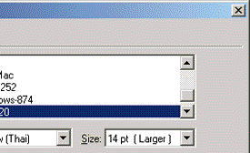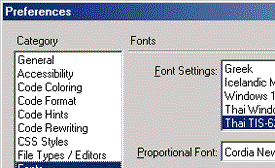 สังเกตให้ดีนะครับในภาพบนจะเห็นว่ามีโค๊ดภาษาไทย TIS-620 ด้วย เราสามารถใช้ตัวจัดการภาษาไทยจากโปรแกรม Dreamwever 4.0 Thaiadon มาติดตั้งก็ได้หรือจะเอาตัวที่ดัดแปลงแล้วไปติดตั้งก็ได้เช่นกัน มีบริการในหน้าดาวน์โหลดแล้ว แต่ต้องเข้าไปแก้ไขเพิ่มเติมอีกเล็กน้อยที่เมนู Edit > Preference แล้วเลือกรหัสภาษาไทยเป็นค่า Default ไว้เลย
