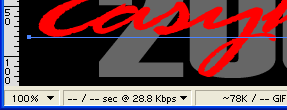 File > Save Optimized As... จะได้เป็นไฟล์รูปภาพนามสกุล *.gif ที่ผ่านขั้นตอนการบีบอัดและรวมเลเยอร์เข้าด้วยกันเรียบร้อยแล้ว (จากเดิม 130 kb เหลือเพียง 8 kb เท่านั้น) ดังภาพข้างล่างนี้