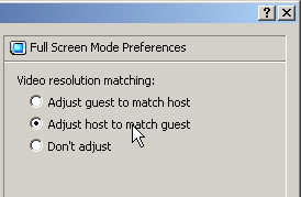 - การกำหนดขนาดการแสดงผลของเครื่องจำลองและเครื่องโฮสต์ ปกติจะเลือกข้อที่สองตามภาพ เพราะบางระบบปฏิบัติการอาจจะแสดงผลด้วยความละเอียดต่ำจะทำให้เกิดขอบดำว่างๆ เมื่อแสดงผลเต็มจอ