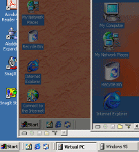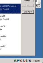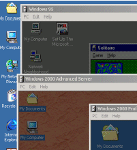 ผมได้ทดลองใช้งานโปรแกรมจำลองเครื่องพีซี เพื่อติดตั้งและทดลองระบบปฏิบัติการและโปรแกรมแชร์แวร์ต่างๆ ที่ชื่อ Virtual PC แล้วปรากฏว่าได้ผลดีช่วยแก้ปัญหาต่างๆ ข้างต้นได้ เพราะส่วนใหญ่แล้วเครื่องคอมพิวเตอร์ที่เราใช้งานในปัจจุบันก็มีพื้นที่ฮาร์ดดิสก์และแรมค่อนข้างจะเหลือเฟืออยู่แล้ว สามารถจะแบ่งปันทรัพยากรมาใช้ได้อย่างไม่จำกัดอยู่แล้ว อย่างในภาพบนจะเห็นว่ามีทั้ง Windows 95, 98, ME, NT, 2000 อยู่บนเครื่องเดียวกันเลย
