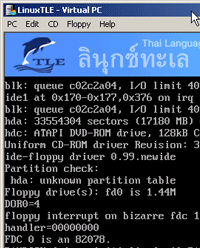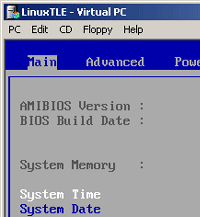 - นี่คือหน้าตาตอนที่เราคลิกที่ปุ่ม Start Up เครื่องจะเริ่มบูตเหมือนตอนที่เราเปิดเครื่องจริง ถ้าคลิกที่แป้น Del ของคีย์บอร์ดก็สามารถตั้งค่าไบออสได้เลย กำหนดไดรว์บูตได้จริง (ยืมไดรว์ A/CD ROM มาจากเครื่องโฮสต์)