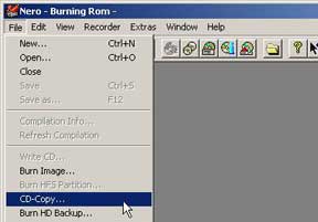 - การสร้างอิมเมจไฟล์เราจะใช้คุณสมบัติของการ Copy CD ของโปรแกรม โดยการคลิกที่เมนู File > CD-Copy...