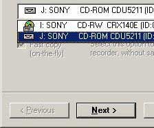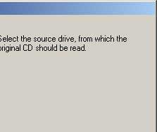 - เลือกไดรว์ซีดีที่เราใส่แผ่นซีดีต้นฉบับไว้ จะเป็นไดรว์ธรรมดาหรือไดรว์เขียนซีดีอาร์ก็ได้ (เลือกไดรว์ที่มีความเร็วมากที่สุดจะทำให้ขั้นตอนต่างๆ เสร็จเร็วขึ้น)