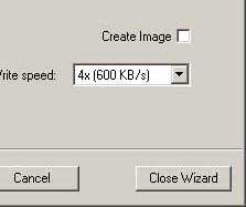 และมีกรอบให้เลือกความเร็วในการเขียน (ขึ้นอยู่กับไดรว์และแผ่นซีดีด้วยว่าสามารถรองรับการเขียนได้ความเร็วสูงสุดเท่าใด?) ตัวอย่างผมเลือกเพียง 4x (600KB/s) จากนั้นคลิกที่ปุ่ม Burn