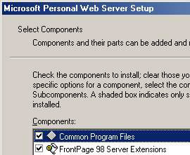 ทางออกที่ดีที่สุดก็คือต้องมีเซิร์ฟเวอร์สำหรับการทดสอบเองแบบออฟไลน์ ไม่ต้องกังวลครับ เพราะเราจะใช้เครื่องตั้งโต๊ะของเรานี่แหละติดตั้งโปรแกรมจำลองเซิร์ฟเวอร์ขึ้นมา ซึ่งตัวโปรแกรมประเภทนี้ก็มีหลายตัวแต่ที่หาง่ายและติดตั้งสะดวกก็เห็นจะเป็น PWS : Personal Web Server นี่เอง ซึ่งสามารถติดตั้งได้ทั้งบน Windows 98 & ME ตัวโปรแกรมหาได้จากแผ่นโปรแกรม Windows 98 แผ่นเต็ม (ในแผ่น Windows ME ไม่มีนะครับ)