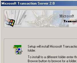 - เข้าสู่ขั้นตอนสำคัญแล้วครับคือการติดตั้ง Transaction Server ซึ่งโปรแกรมจะระบุตำแหน่งติดตั้งเป็น C:\Program files\Mts ซึ่งจะทำให้ PWS ทำงานไม่ถูกต้องใน Windows ME โดยแจ้งว่าหาเซิร์ฟเวอร์ไม่พบให้แก้ไขดังกรอบถัดไป