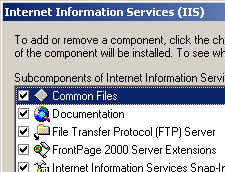 - จะเห็นว่ามีส่วนประกอบของโปรแกรมมากกว่าใน PWS มากทีเดียวทั้ง FTP, FrontPage 2000 Server Extension, Personal Web Server, SMTP Service เพียงแต่เป็นรองเวอร์ชั่นที่ติดตั้งบน Windows 2000 Advance Server เท่านั้นเอง