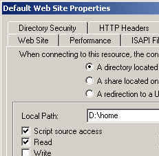 - เมื่อคลิกเมาท์ขวาที่ Default Web Site จะพบกับกรอบสำหรับการปรับตั้งค่าต่างๆ ได้มากกว่า PWS
